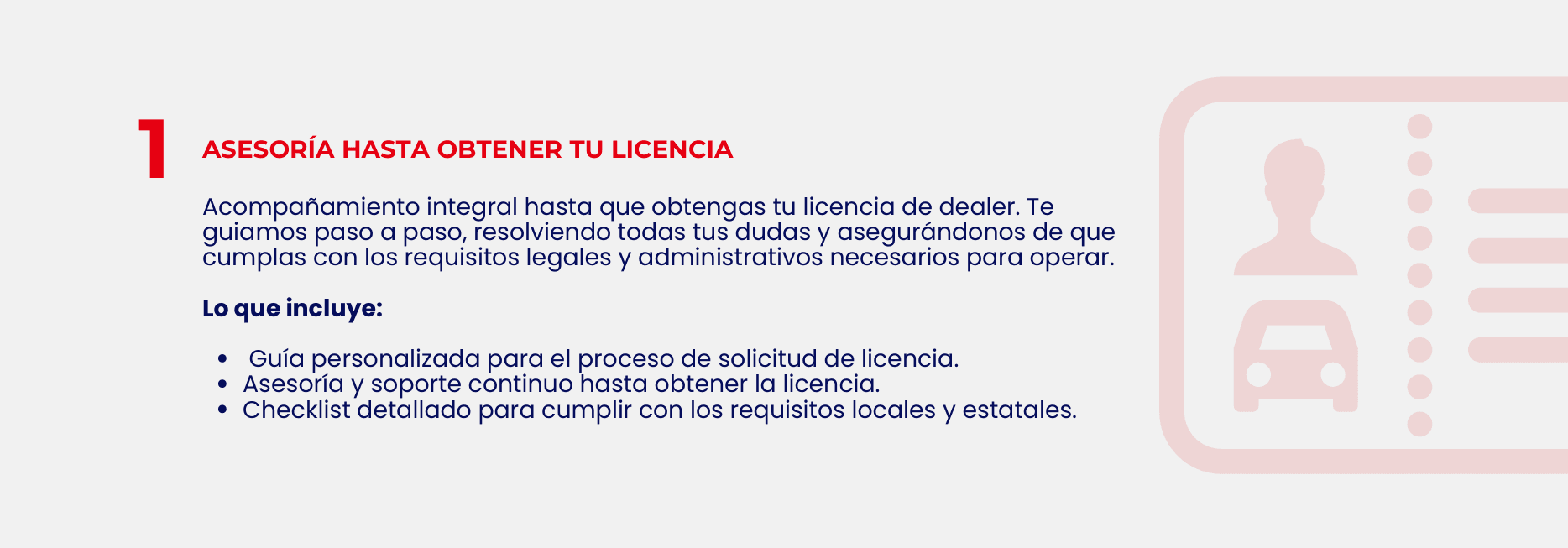 Acompañamiento integral hasta que obtengas tu licencia de dealer. Te guiamos paso a paso, resolviendo todas tus dudas y asegurándonos de que